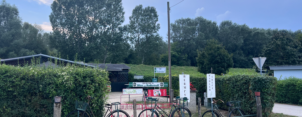 Ankunft mit dem Zug am Wiener Hauptbahnhof am frühen Nachmittag. Das Wetter spielt gut mit auf den ersten 50 Kilometern, am Handelskai über die Donau und dann am Radweg bis zum ersten Radlerstopp in Schönau an der Donau. Es folgt eine lange Gerade durch Aulandschaft bis Stopfenreuth, wo die Route wenig später zum anderen Donauufer wechselt und das Tagesziel Hainburg bereits sichtbar ist.
