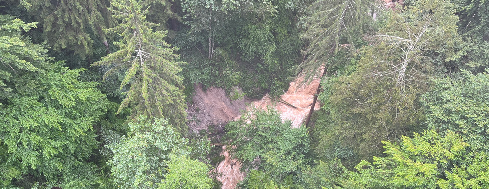 Aber bereits die nächsten Kilometer bringen eine Steigerung zum bisherigen Verlauf. Der Radweg von Radlje ob Dravi bis Dravograd ist von der stark Hochwasser führenden Drau überschwemmt. Auf der Bundesstraße fahren keine Autos mehr. Sie ist stellenweise bis zu 20 cm mit Schlamm bedeckt. Es folgten zwei Straßensperren, die ich nur mit der Zusicherung passieren kann, dass ich nach Lavamünd fahren würde. Dort reicht der Pegelstand der Drau bis knapp zur Brücke.