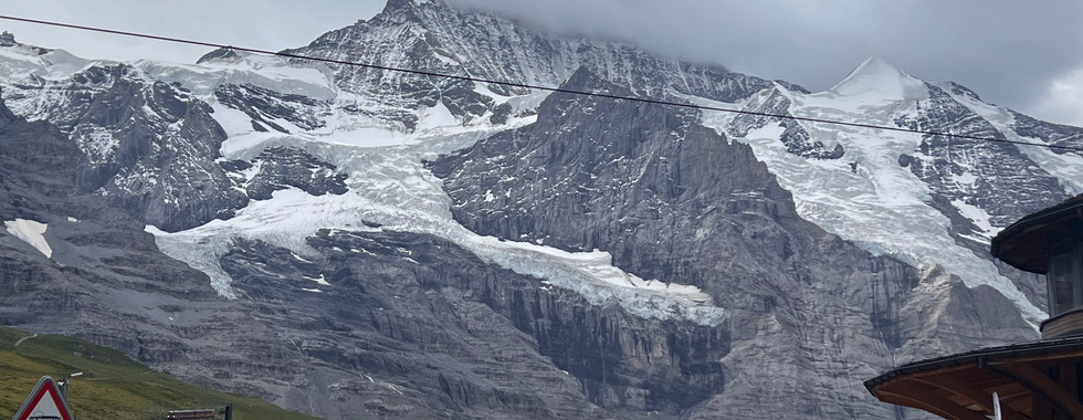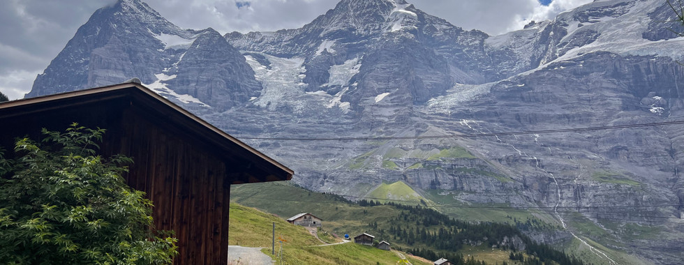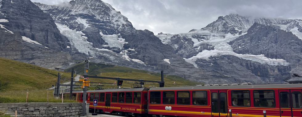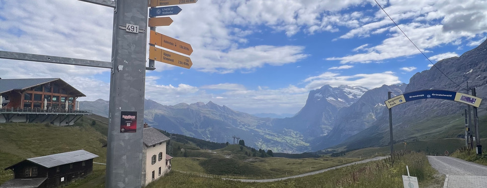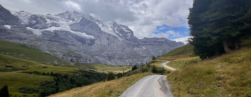 Am nächsten Morgen gleicht Grindelwald einem Ameisenbau. Die unzähligen Teilnehmer an der Eiger-Challenge nutzen die Straßen im Ort um sich für den Rennstart aufzuwärmen. Ein Hinweisschild weist den Weg über die kleine Scheidegg als Mountainbikestrecke aus. Dementsprechend anspruchsvoll gestaltet sich auch der Anstieg zwischendurch begleitet vom Zug, der das gleiche Ziel anpeilt. Die kleine Scheidegg ist beeindruckend: Die Bahnhaltestelle am Fuße der Eiger-Nordwand und mit Blick auf Mönch, Jungfrau und Lauberhorn.