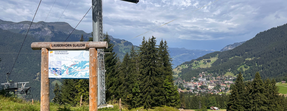Die folgende Abfahrt verdeutlicht, warum das Schirennen hier so legendär ist. Das Gefälle schiebt ordentlich, aber die Kulisse ist wirklich atemberaubend! Das ändert sich auch nicht, als es von Wengen talwärts geht, denn hier eröffnet sich der Blick auf das malerische Lauterbrunnen mit dem markanten Wasserfall über die Felswand.